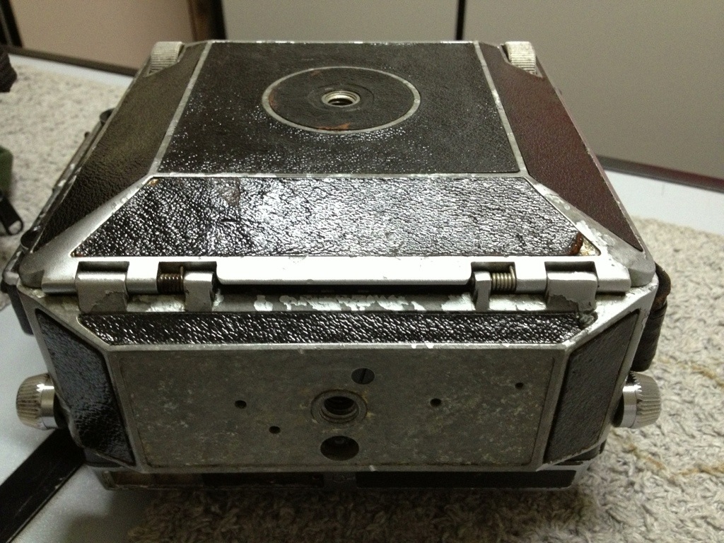 Levei a Technika III para o Celso Eberhardt reformar. A câmara estava inteira oxidada, o couro inteiro levantando, uma bagunça. Fiz algumas fotos de antes: