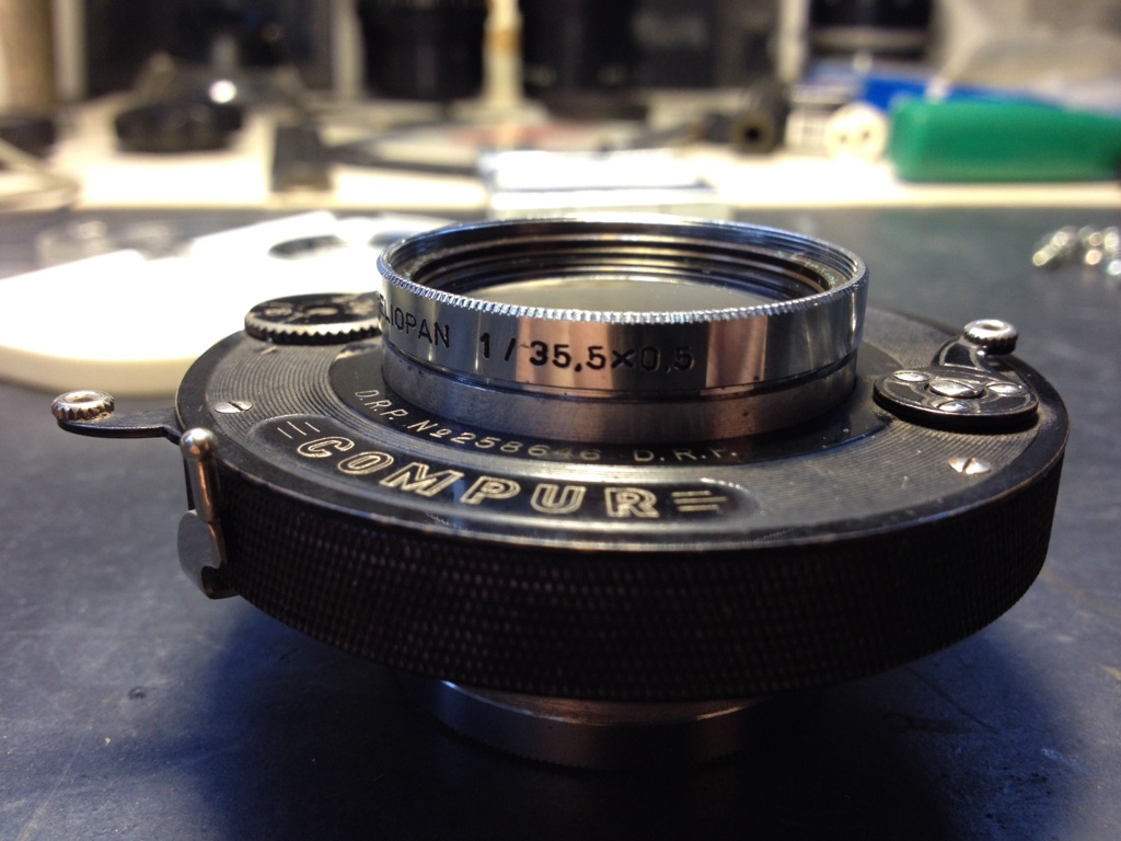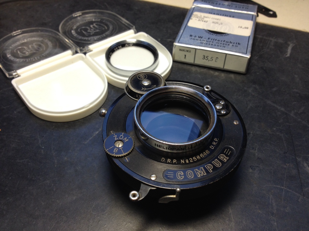 Resolvi tentar algo parecido usando um obturador Compur antigo e dois filtros do tipo close-up em tamanho 35,5mm.
