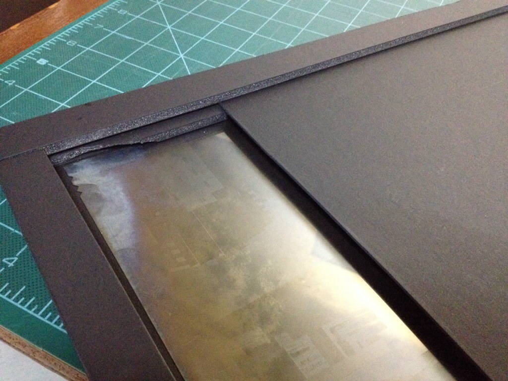Indo adiante com o projeto da câmara grande. Fiz um chassi de filme para testar alguns materiais (gatorfoam, passepartout Crescent).