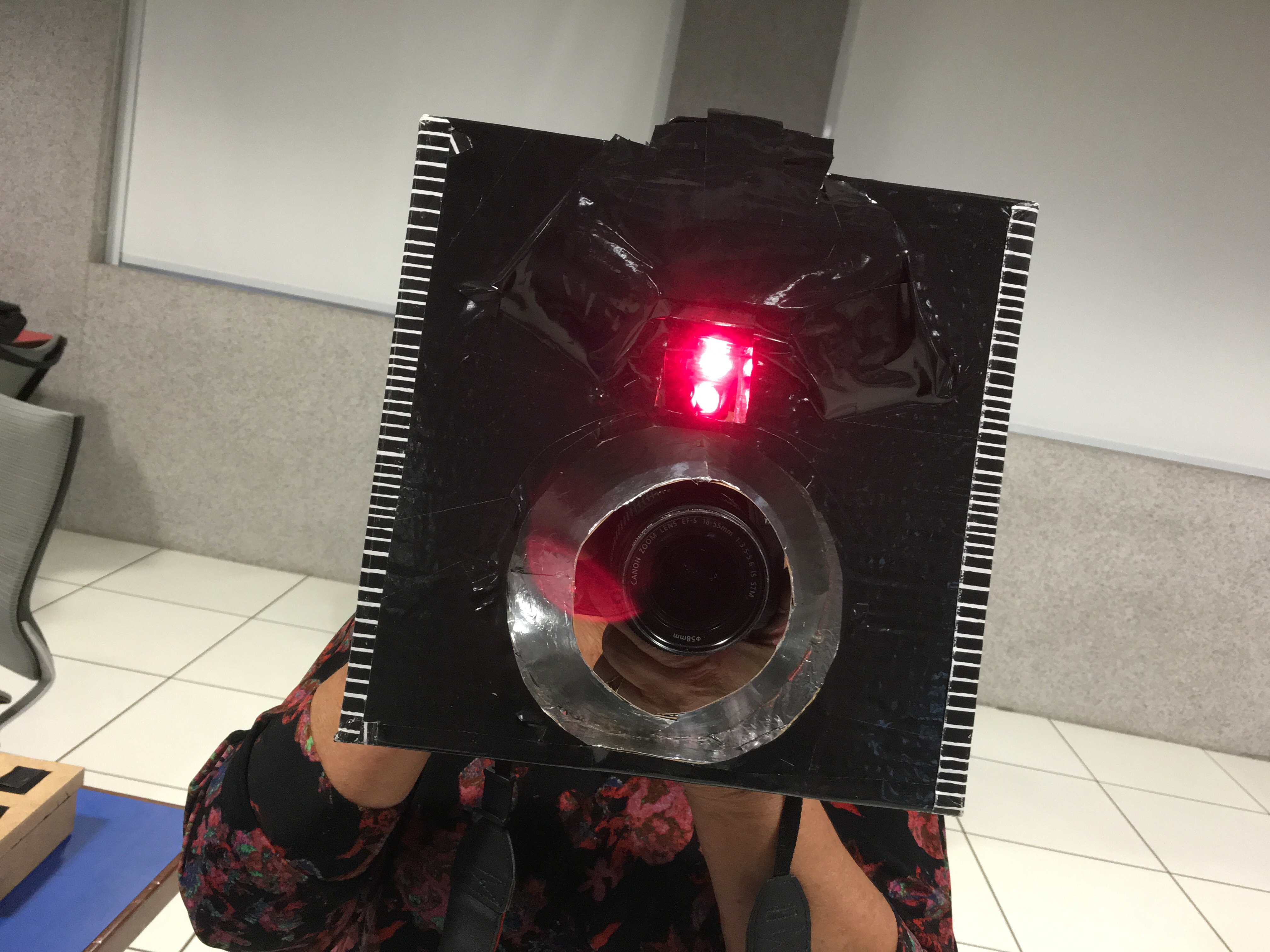 A Fernanda fez uma câmera obscura para usar com o celular e esa curtindo as cores e as texturas das coisas desfocadas no papel vegetal.