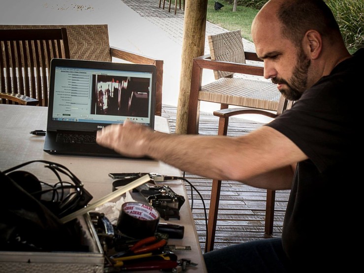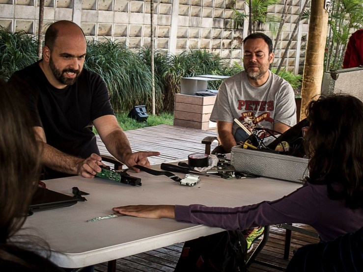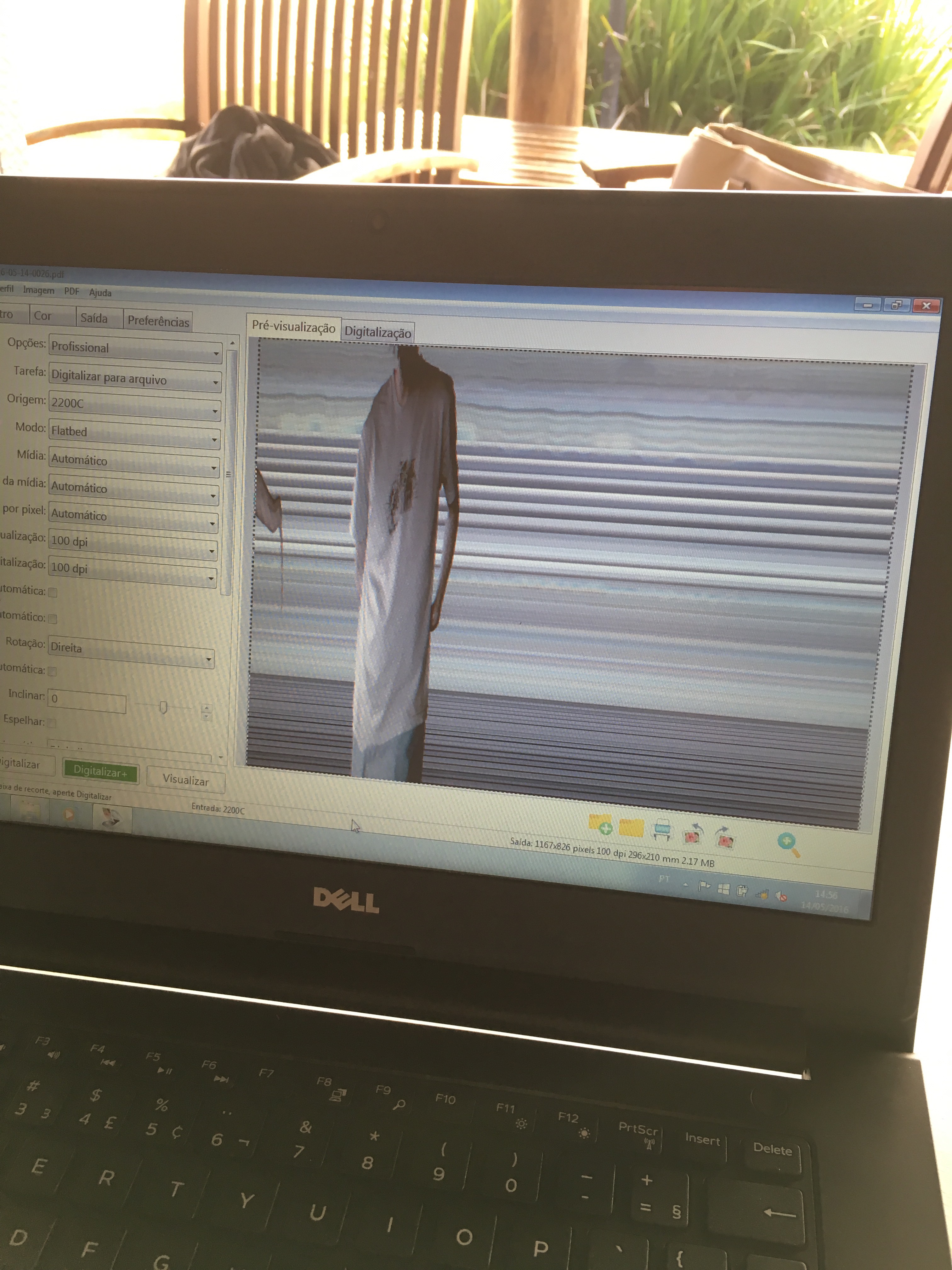 Desmontamos um scanner antigo com portas paralelas só para entender as peças e seu funcionamente, depois tentamos fazer a câmera com um HP 2400, por incrível que pareça deu certo. Eu usei um laptop do Sesc dessa vez, era um PC Dell, então foi um pouco diferente e esse scanner que não funciona em Macs, não deu problema com o PC. Usamos o Vuescan em modo trial, por isso os escritinhos sobre a foto.
