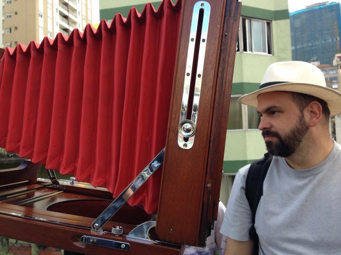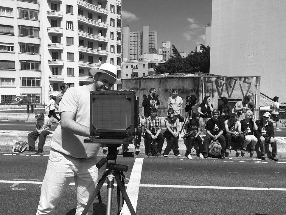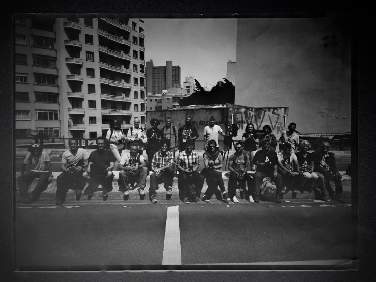 Levei minha 8×10″ da Rochester Optical Co. com uma objetiva Schneider Angulon 165mm e usei Kodabromide F2 peso simples 18x24cm como negativo para essa foto do grupo. Graças ao lab do Luciano Bernardes revelamos esse negativo de papel lá mesmo! Valeu Rosangela Andrade por agitar esse passeio lindo!