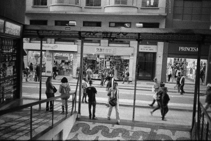 Usei diversos tipos de filme: Agfa APX100, Ilford FP4, Ilford Pan F; procurei ficar nos ISO mais baixos e manter a lente mais aberta (de modo que em algumas imagens, como acima, dá para perceber as laterais mais suaves da lente toda aberta).