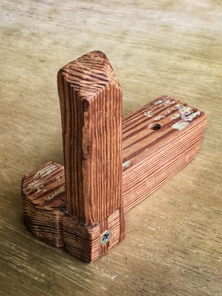 Comecei com um restinho de pinho-de-riga. Em algum momento havia uma espuminha colada nele para melhor aderência ao corpo da câmera.