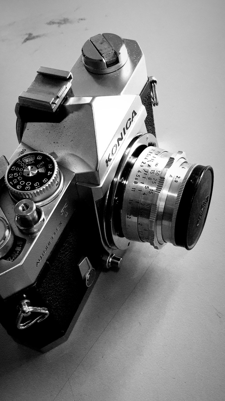 A segunda experiência foi usar um corpo de câmera Konica para receber objetivas difíceis de serem convertidas. O registro da baioneta Konica AR é de apenas 40.5mm, ou seja, sobra mais espaço entre corpo e lente para converter objetivas diversas.