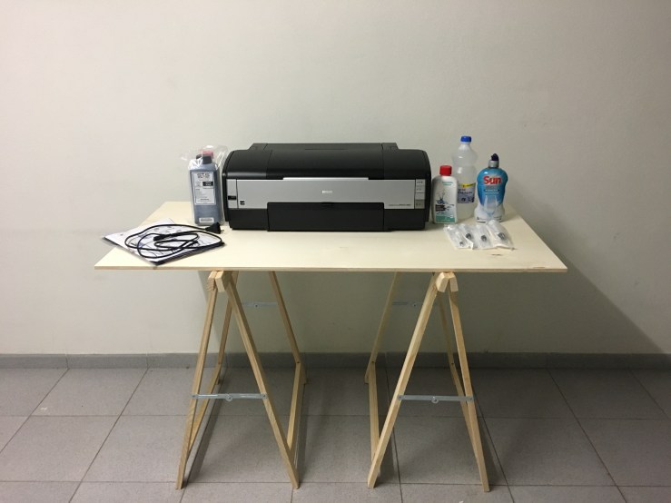 Aos poucos eu estou recriando um espaço para trabalhar em imagens. A primeira coisa que eu queria ter novamente é uma impressora que pudesse imprimir em carbono. Comecei a busca pelas Epson 7600 ou 9600, até achei umas candidatas interessantes, mas todas muito distantes daqui. Cheguei a pensar em modelos mais modernos, achei umas próximas, mas muito caras para esse momento de experimentação. Dai olhando o Marketplace do Facebook encontrei uma Epson 1400, conhecida em outras paragens como Artisan, uma impressora A3+ relativamente pequena.