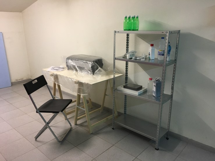 Outros itens foram mais fáceis, as dicas da Sofia Silva valeram e achei água destilada e glicerina no Leroy Merlin, de onde vieram também os cavaletes, a placa que virou tampo de mesa e a estante metálica.
