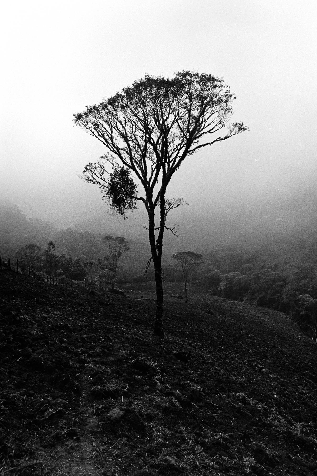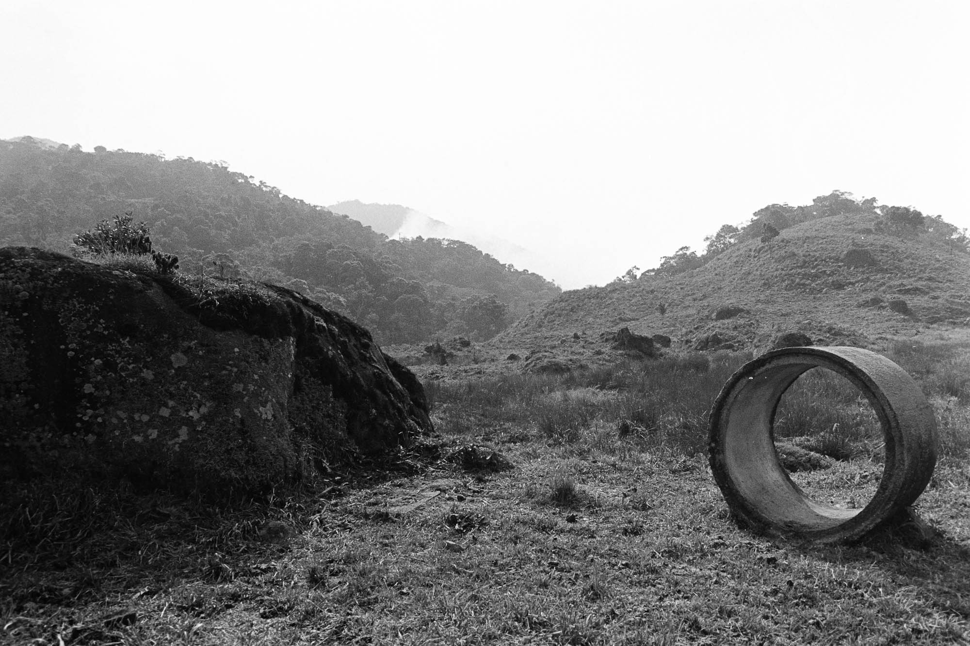 Aos poucos, o Sol foi varrendo a névoa e queimando a gente, mais e mais. Chegamos nesse canto com umas construções abandonadas, não faltava luz. Eu tinha trazido um tripé, sonhando em achar um rio caudaloso para transformar em névoa. Foi em vão, o tripé ficou no ombro a caminhada inteira. Virou chacota quando perceberam quão pesado era aquele objeto inútil.
