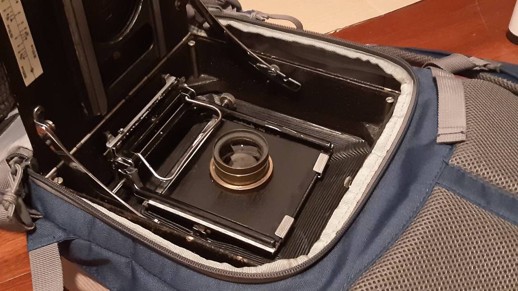 Depois da mudança para Portugal tinha ficado sem nenhuma câmara de grande formato e recentemente tinha conseguido trazer do Brasil um pacote que tinha deixado reservado lá. A caixa continha filmes 5×7″ e 13x18cm, chassis para filmes e algumas outras peças para reformar uma futura câmara nesse formato que é o meu predileto.