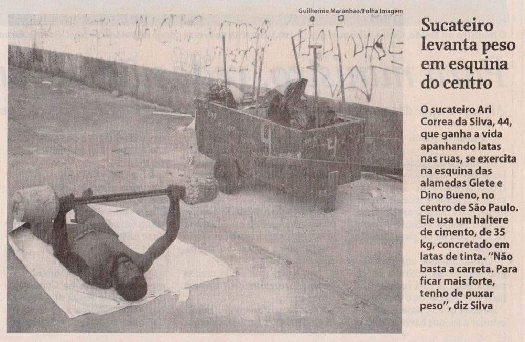 Chegando de volta de uma pauta, numa tarde, vi essa cena num posto de gasolina abandonado ali na Vila Buarque. Conversei com aquele homem, pedi sua autorização para fotografar, colhi uns dados, anotei uma frase dele. No dia seguinte essa imagem me rendeu número 1 em recall (sem o jornal na mão, era a fotografia que mais leitores se lembravam de ter visto).