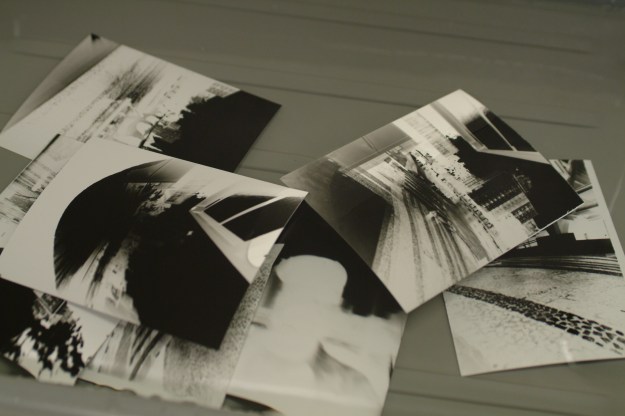 Minha mãe veio visitar e me trouxe um saco de outras tranqueiras que eu tinha deixado na casa dela. Tinha pedaços de um film holder 4×5″ e uns darkslides de outros, tudo separado para um futuro distante. Com paciência e uma faquinha jeitosa consegui montar um film holder razoavelmente funcional de partes diversas.