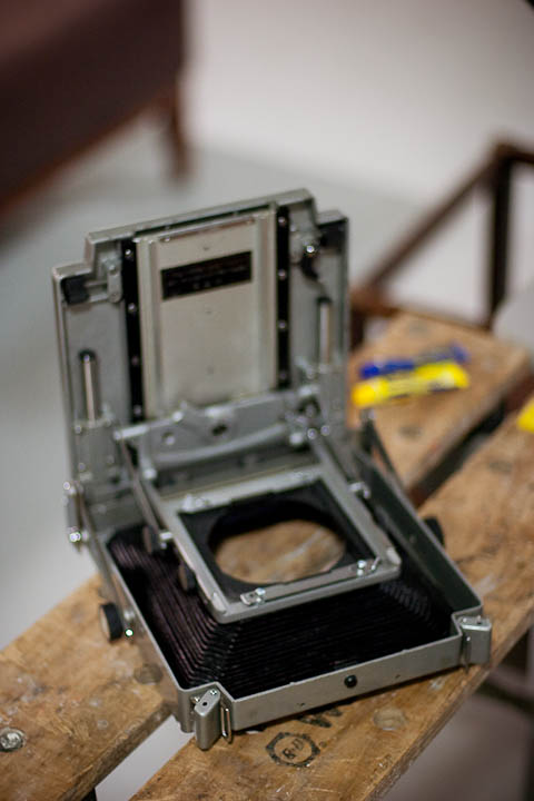 Depois da mudança para Portugal tinha ficado sem nenhuma câmara de grande formato e recentemente tinha conseguido trazer do Brasil um pacote que tinha deixado reservado lá. A caixa continha filmes 5×7″ e 13x18cm, chassis para filmes e algumas outras peças para reformar uma futura câmara nesse formato que é o meu predileto.