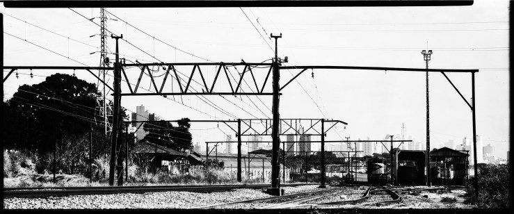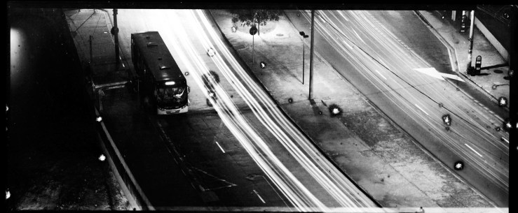 A lente é uma 210mm. Aqui o ampliador está simplesmente ameaçado no lugar, estava tirando umas medidas e testando o sistema de foco. Comecei tentando usar uma câmara fotográfica 5×7″ para fazer o ampliador, mas o chassi de um Durst antigo se provou mais firme para a tarefa.