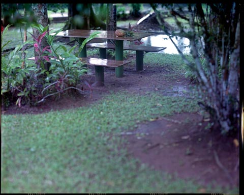 A outra lente do meu kit é uma Kodak 500mm Copying Ektanon (que surpreendentemente funciona bem fotografando objetos distantes) . É uma meia-tele para 8×10″ e permite fazer imagens com um foco bem localizado. Veja o detalhe do abacaxi na sequência.