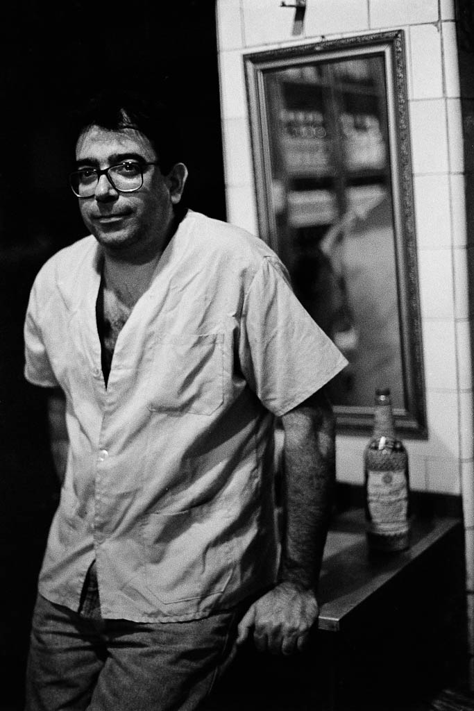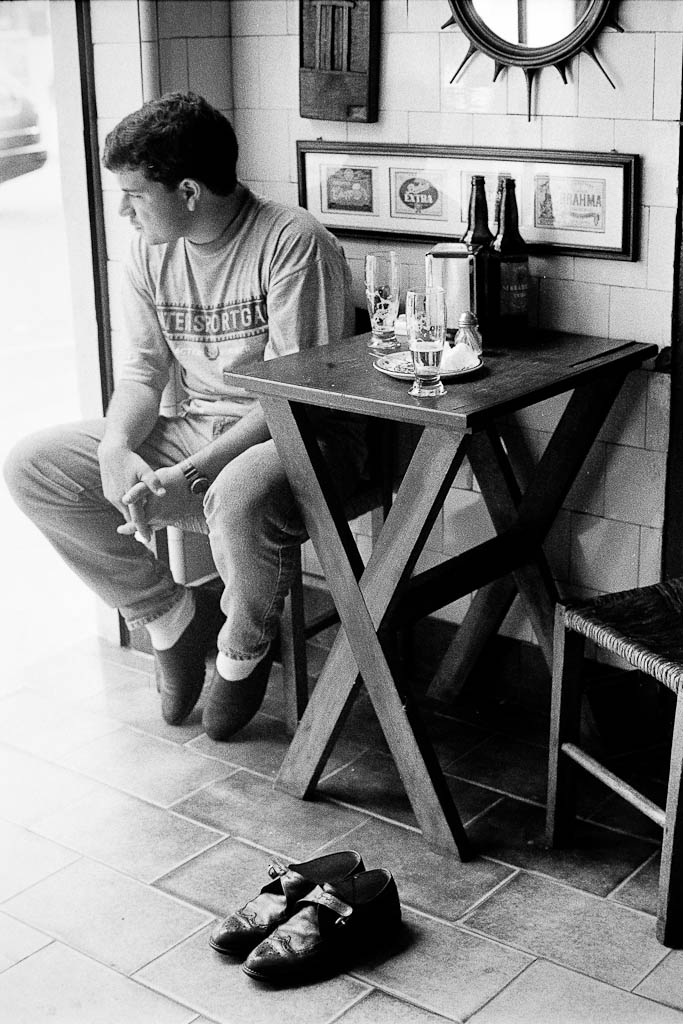 Em geral fotografava em Kodak Tri-X com objetivas 50mm f/1.4 ou 28mm f/2.8 na minha fiel Nikon FM2. Filme era puxado boa parte das vezes, para 1600 eu arriscaria dizer. Afinal eram os anos 90 e puxar era essencial nessas situações de luz.