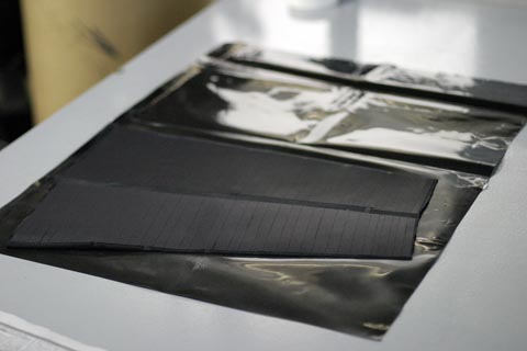 O próprio Mitchell fala em colocar tecido em ambos os lados do plástico para dar um ar mais profissional ao fole, eu não fiz isso. Porque? Porque todos esses materiais já eram coisa demais para o fole de uma câmara field (que tem menos espaço para o fole quando ela fica fechada). O tecido ficou virado para dentro, dando o acabamento fosco que o fole necessita. O plástico para fora.