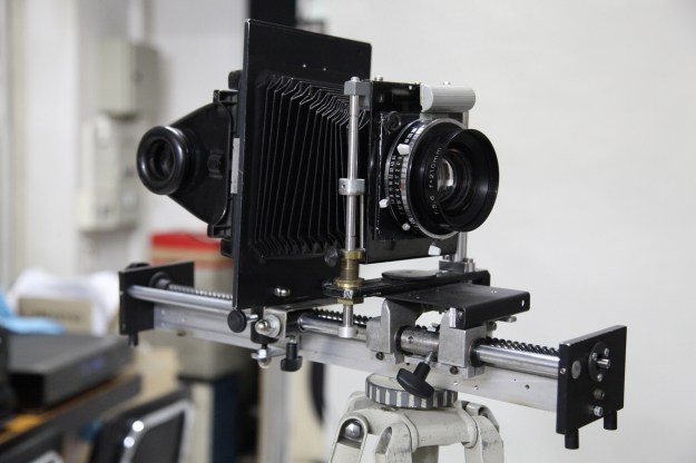 A câmara tem diversos movimentos, anda sobre 4 rodas, tem foco motorizado e um obturador elétrico com controle de tempo digital. Brutal!