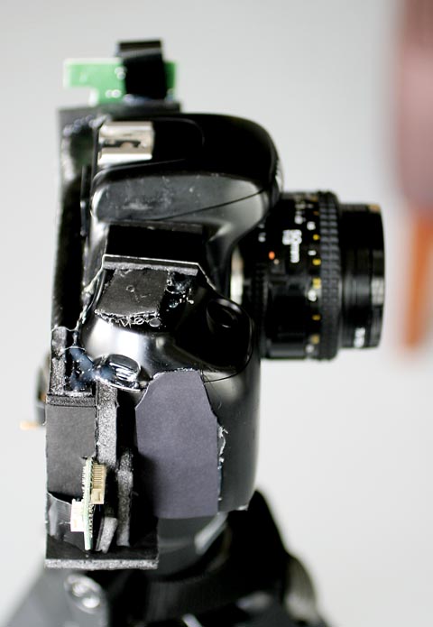 Agora aproveitei o fim-de-semana para concluir a câmera. Usei foam preto para construir uma barreira contra a luz ao redor da nova traseira. Ficou assim: