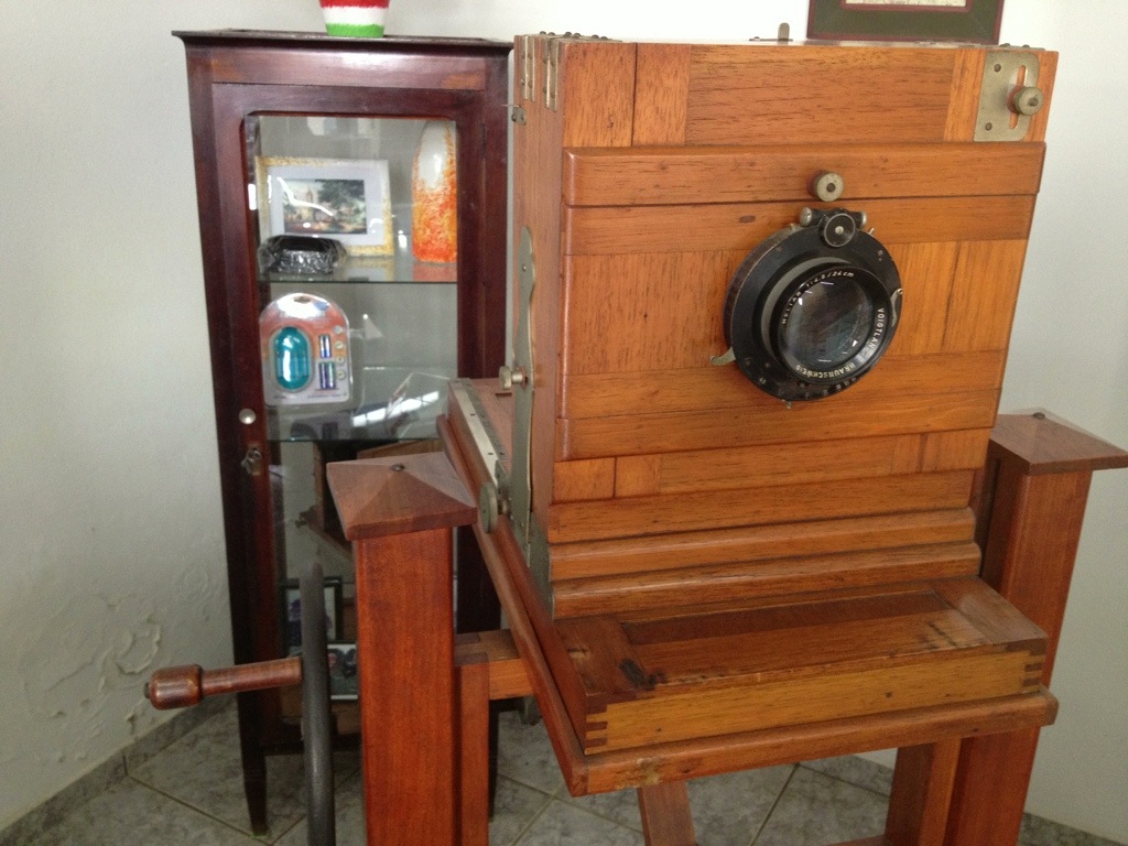Ao entrar nessa loja logo se vê uma câmara 18x24cm com uma Heliar 24cm montada num Compound. A câmara dá uma idéia da história que está guardada ali.