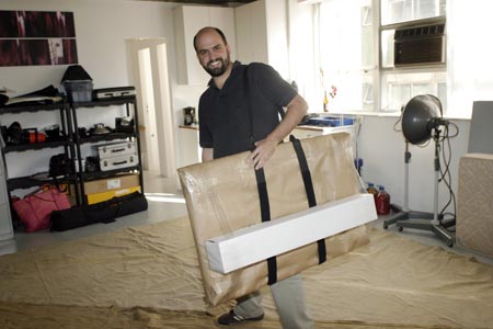 A Camila veio visitar e fez essa foto enquanto eu dava um talento na carcaça do Scanjet para deixar ele limpinho para entrar no museu.