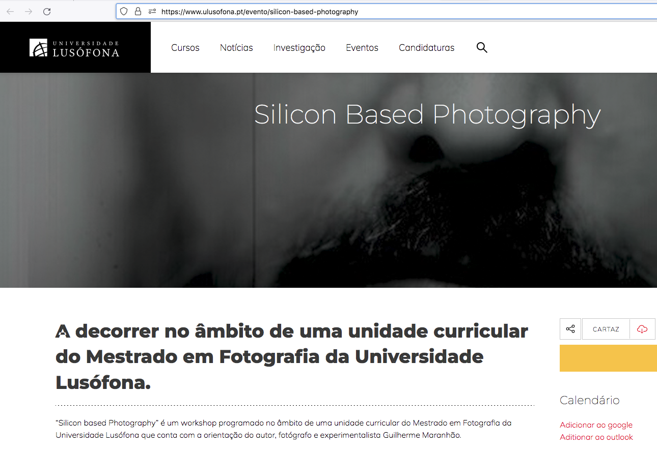 ‘Silicon Based Photography’ é um workshop programado no âmbito de uma unidade curricular do Mestrado em Fotografia da ULHT, que conta com a minha orientação.